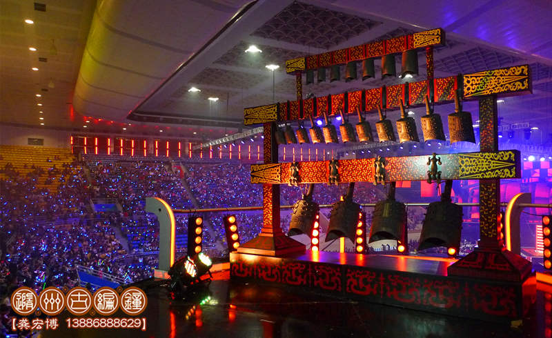 古編鐘公司受節(jié)目組委托將一套中型青銅編鐘運(yùn)達(dá)活動現(xiàn)場,參加好聲音北京總決賽的開場部分,晚會以敲擊中國2400多年前的編鐘之聲開場,寓意中國文化底蘊(yùn)豐厚,好聲音自古傳今,節(jié)目由此發(fā)掘出中國眾多好聲音學(xué)員,開創(chuàng)新一代造星之路。
