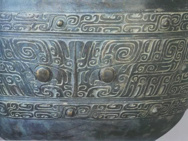青銅器剛鑄造完就是這個(gè)顏色,因?yàn)楸砻娴你~在高溫下氧化了,呈現(xiàn)在我們面前的就是這種青灰色。經(jīng)打磨拋光后也不是我們常見的青銅器的顏色,而是非常漂亮的金黃色。博物館里展出的青銅器是經(jīng)過漫長的歲月沉淀,表面已發(fā)生氧化銹蝕,才呈現(xiàn)藍(lán)斑綠銹。所以“青銅”只是我們現(xiàn)代人的叫法,商周時(shí)代青銅被稱為“金”或者“吉金”。